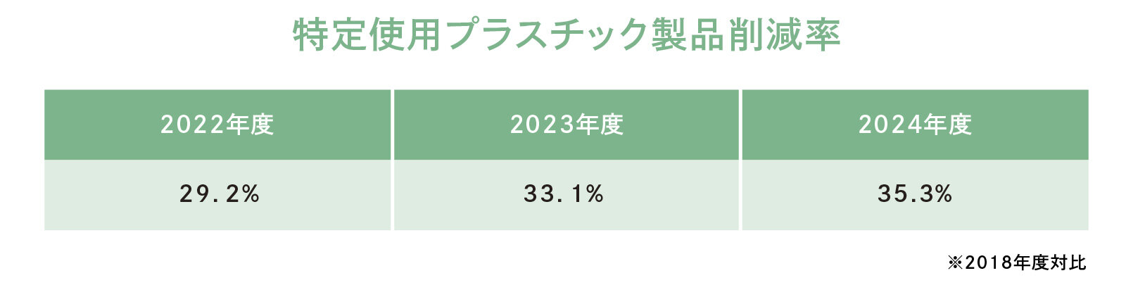 セブン-イレブン・ジャパンでは特定使用プラスチック製品※削減の取り組みとして、プラスチック製カトラリーやストロー等を2018年度対比で2030年までに50%削減・置換を目標として取り組んでいます。