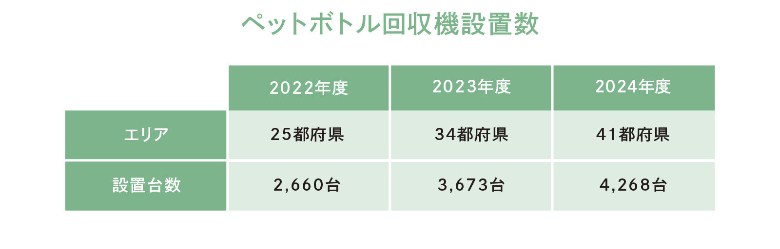 セブン‐イレブン・ジャパンでは、2015年12月より、東京都江東区内の5店舗でペットボトル回収機の実証実験を実施し、その後2017年12月から、環境省の省CO2 型プラスチック高度リサイクル設備導入事業として、東京都と埼玉県の店舗に設置を拡大しました。2019年9月には沖縄県、2020年1月には横浜市へペットボトル回収機を設置し、その後全国の店舗へ順次設置を拡大しています。