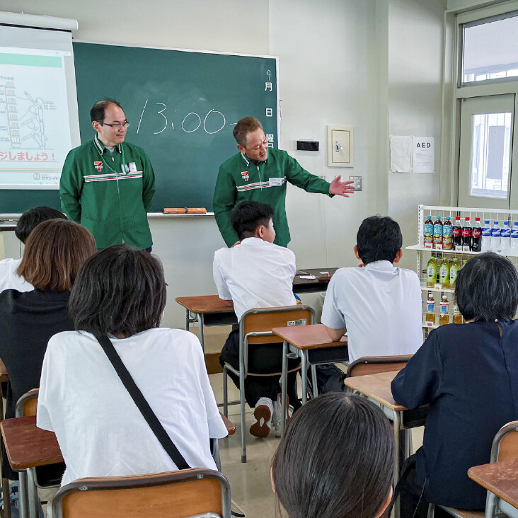 学校を訪問しての出張授業では、セブン‐イレブンの仕事やSDGsの取り組みを伝えています。
