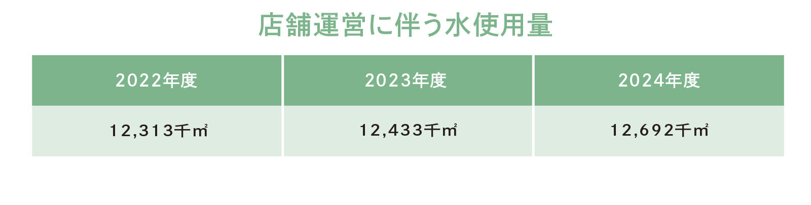 また、店舗から発生する排水の処理についても、同様に環境に配慮した管理を実施しています。国の法令と店舗所在地の地方自治体の条例を遵守し、各地の適切な排水処理場・浄水場で排水を処理することにより、河川や海に汚水が流れないよう徹底しています。