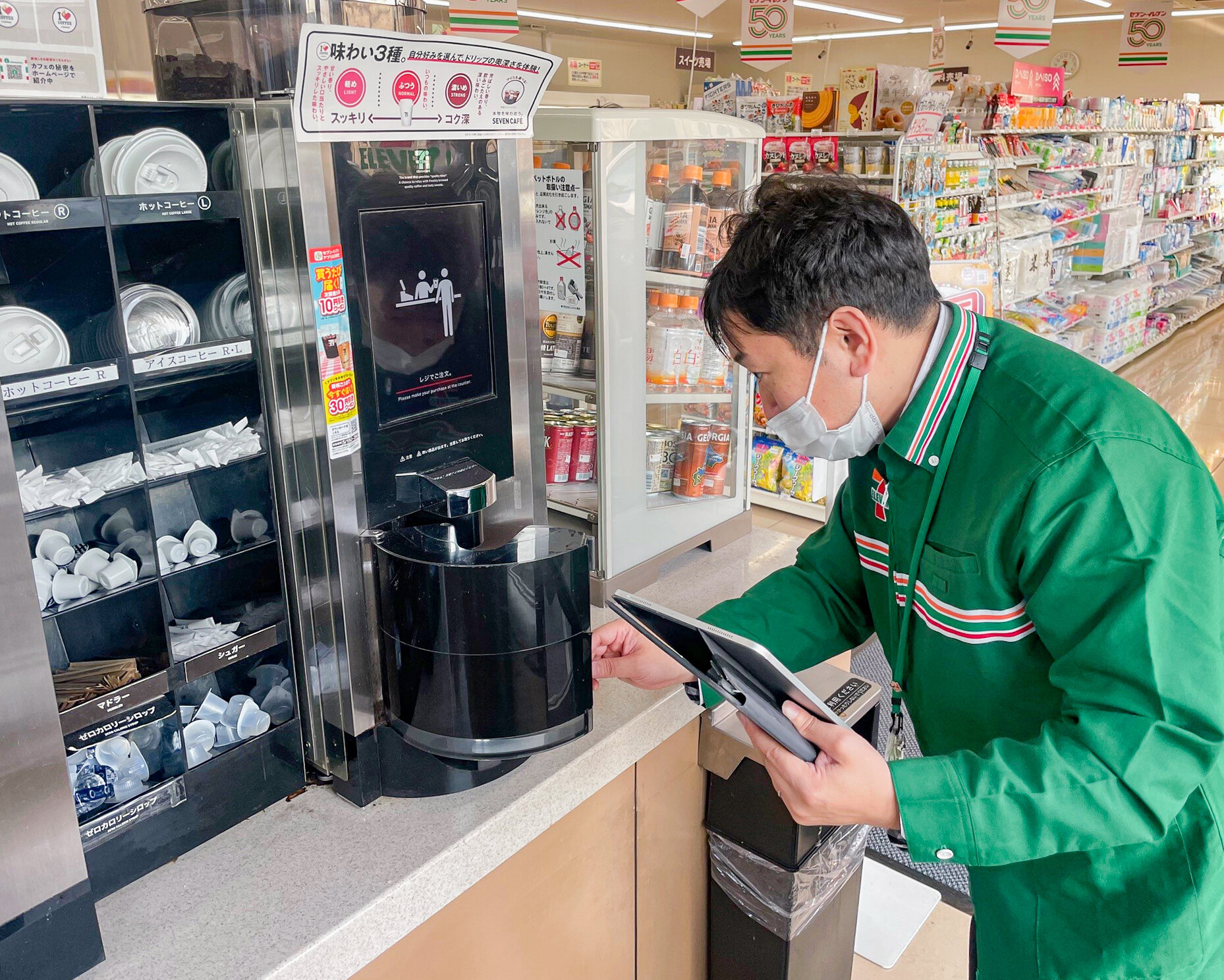 セブン‐イレブン・ジャパンでは、お客様に「安全・安心・美味しい」をお届けするため、店舗運営においても衛生管理を徹底しています。店舗では、HACCPの考え方を取り入れ、タブレットなどを活用した衛生管理を徹底しています。手洗いや調理器具の除菌、マシンの清掃、冷蔵・冷凍ケースの温度確認などを日々実施。販売期限切れ商品の撤去や、レジ横商品の鮮度管理も行い、常に安心して利用いただける店舗環境を維持しています。