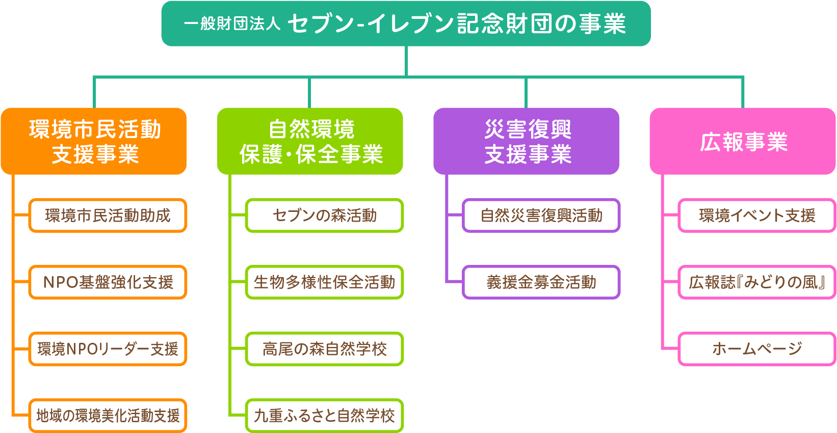 セブン‐イレブン・ジャパンでは、創立20周年記念事業として、1993年11月に一般財団法人セブン‐イレブン記念財団を設立しました。加盟店と本部が一体となって環境をテーマに社会貢献活動に取り組むことを目的に、自然環境保護・保全のための学習施設の運営や、各種の取り組みや会議に積極的に参加しています。