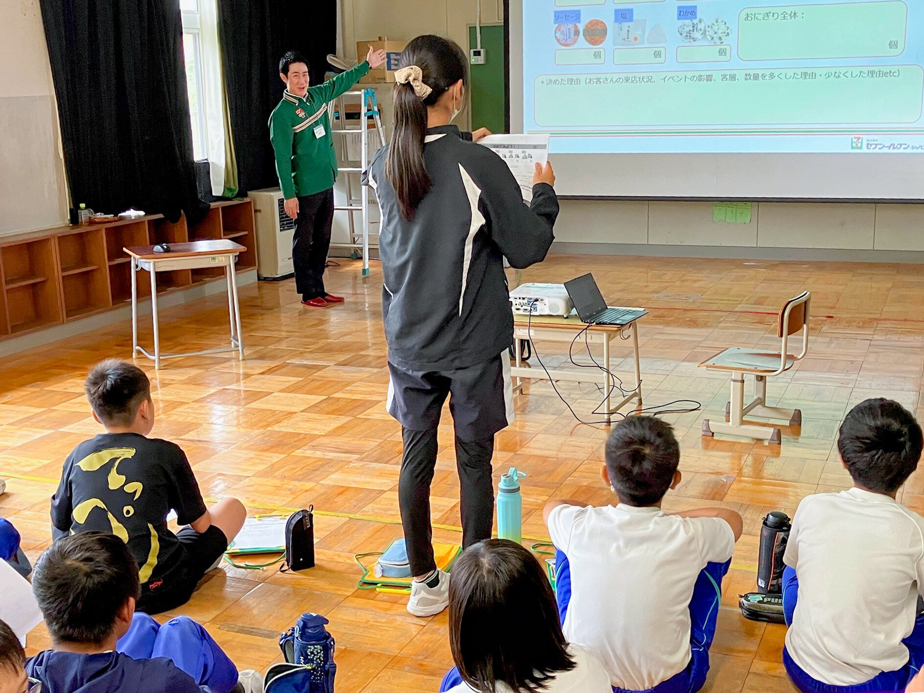 セブン-イレブン・ジャパン(以下、セブン-イレブン)は、長野県長野市立東条小学校にて、出張授業を実施しました。授業では、セブン-イレブンが進めている食品ロス削減の活動を紹介したほか、実際の店舗をモデルとし、天候や来店されるお客様の傾向を踏まえておにぎりの仕入れをシミュレーションする体験型のプログラムも行いました。生徒たちはグループごとに意見を出し合いながら、楽しく学ぶ様子が見られました。