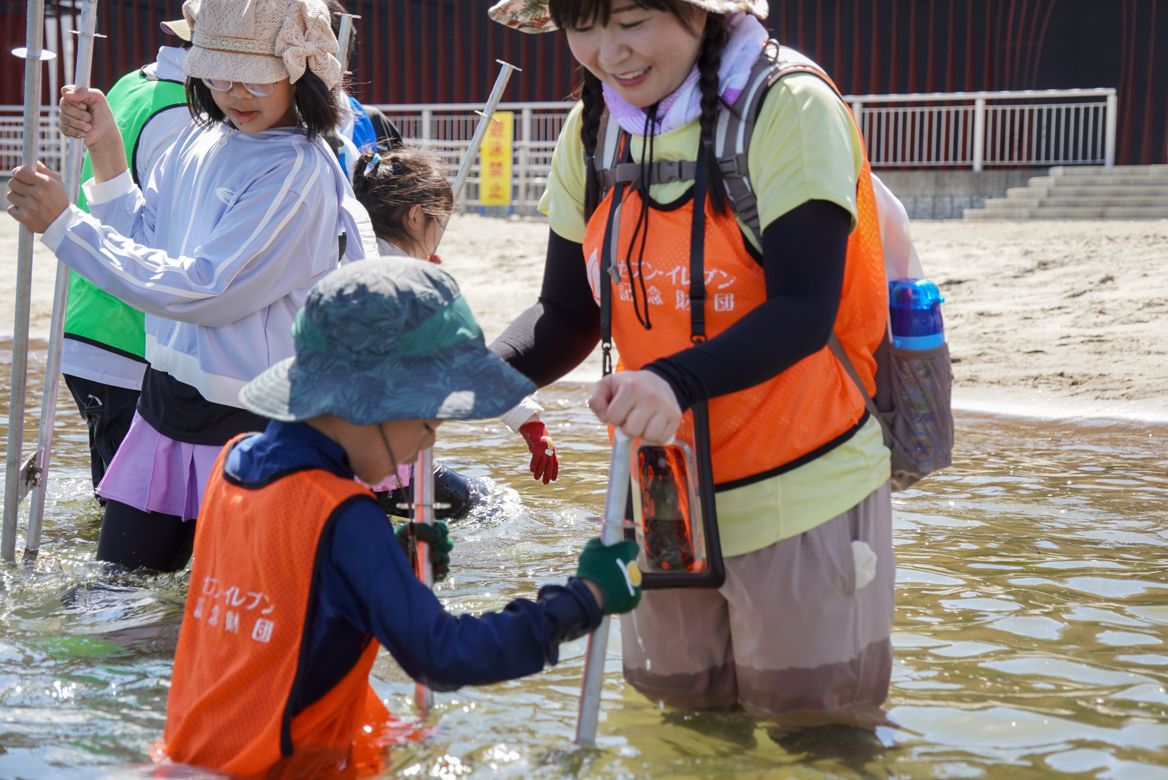 最後に、スゲアマモの播種活動を行いました。八戸工業大学の皆さまが制作した器具を使い、できるだけ深い場所に種を埋めていきます。スゲアマモは環境省のレッドリストに掲載されている貴重な植物です。その数を増やすことで、青森駅前ビーチの豊かな自然や魅力をより多くの方に伝えていけるよう、今後も活動を続けていきます。