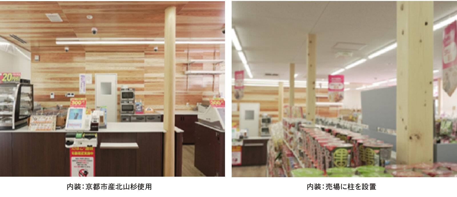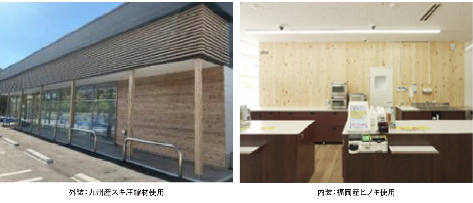 今後、新たに出店する店舗などにおいて、持続可能な資源である木材(地域材)を積極的に活用した木造化・木質化を推進し、5年間で約1,375㎥(25店舗/年×11㎥/店×5年間)の地域材の利用を目指します。