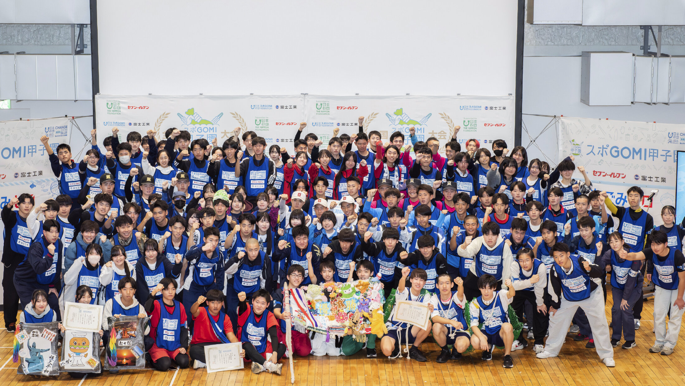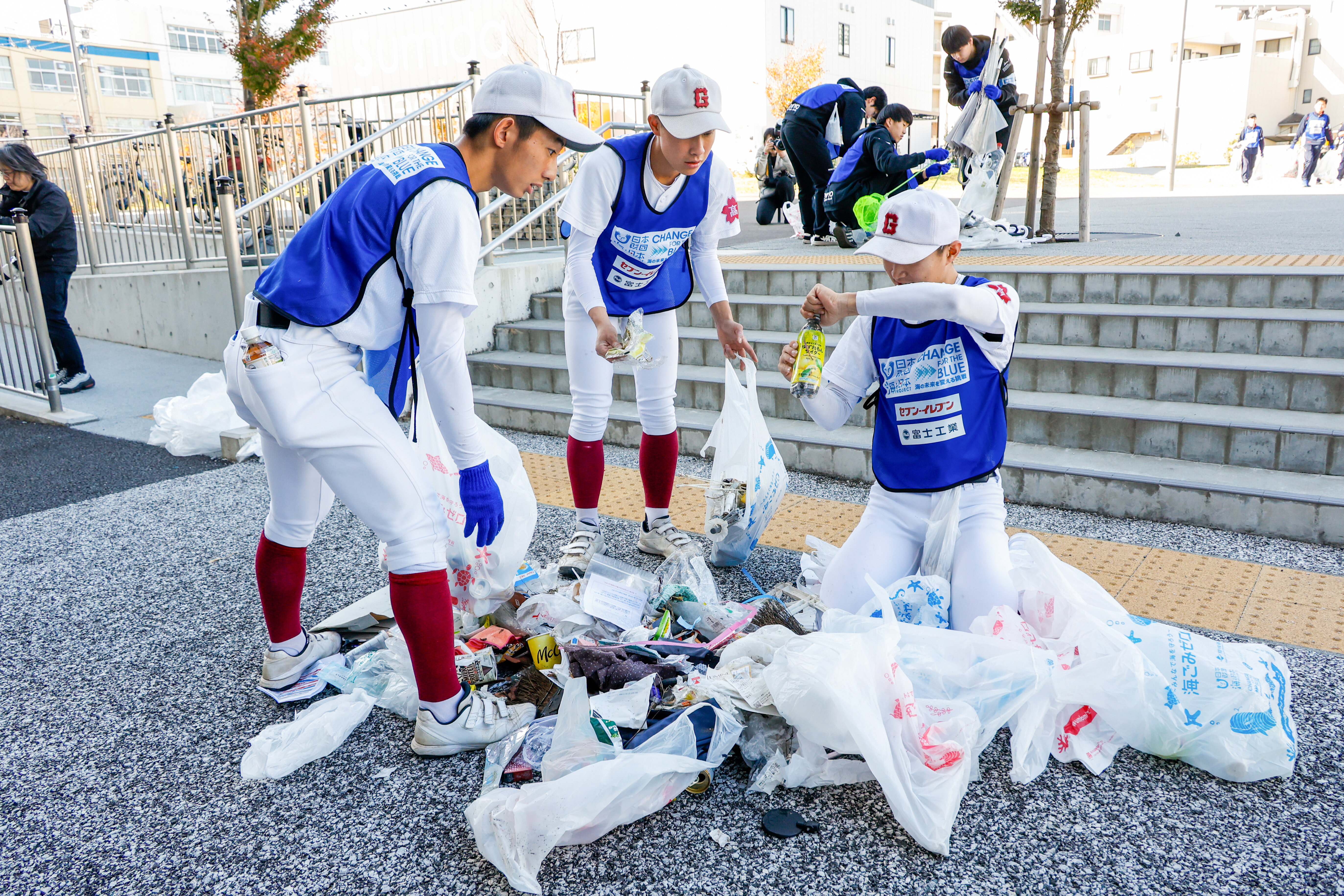 セブン‐イレブン・ジャパン(以下:セブン-イレブン)は未来世代との共創の一つとして、地域・環境に関する活動を支援する目的で、日本財団「海と日本プロジェクト」の一環である「スポGOMI甲子園」に協賛しています。11月30日(日)に全国大会が東京都墨田区で開催されました。高校生3人1組のチームがごみ拾いの成果を競い合い、日本一を決めるこのイベントには、全国各地の予選大会を勝ち抜いた代表42チームが参加しました。競技の末、優勝チームや第7位のチームに贈られる「セブン‐イレブン賞」が決定しました。