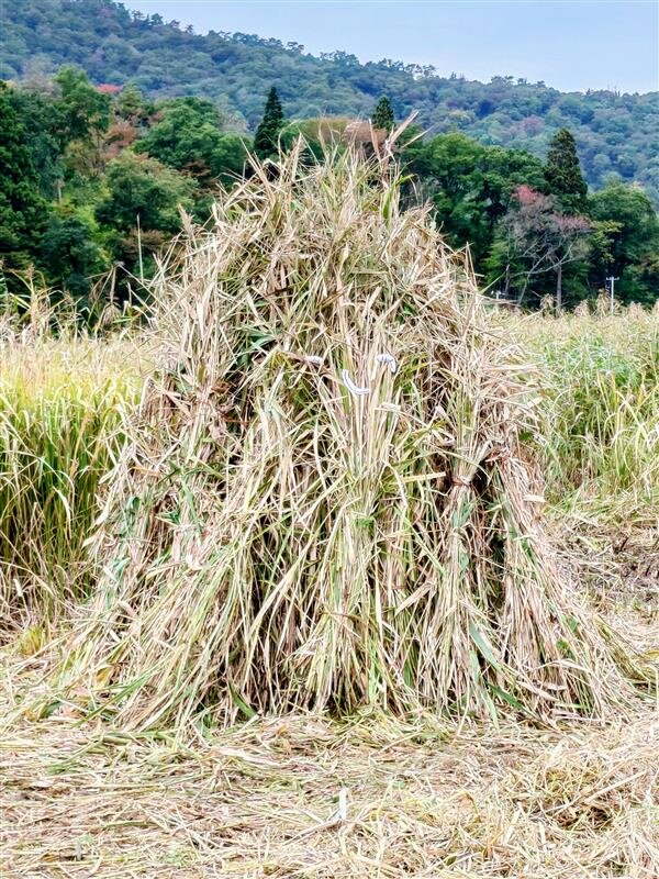 今回の活動内容は、夏の間に刈り取った葦(ヨシ)を集めて円筒状に束ねる「ぼっち」つくりです。これは来春に予定しているヨシ焼き(野焼き)の事前準備であり、湿地が乾いて陸地になるのを防ぐことや埋土種子の発芽促進に効果があります。