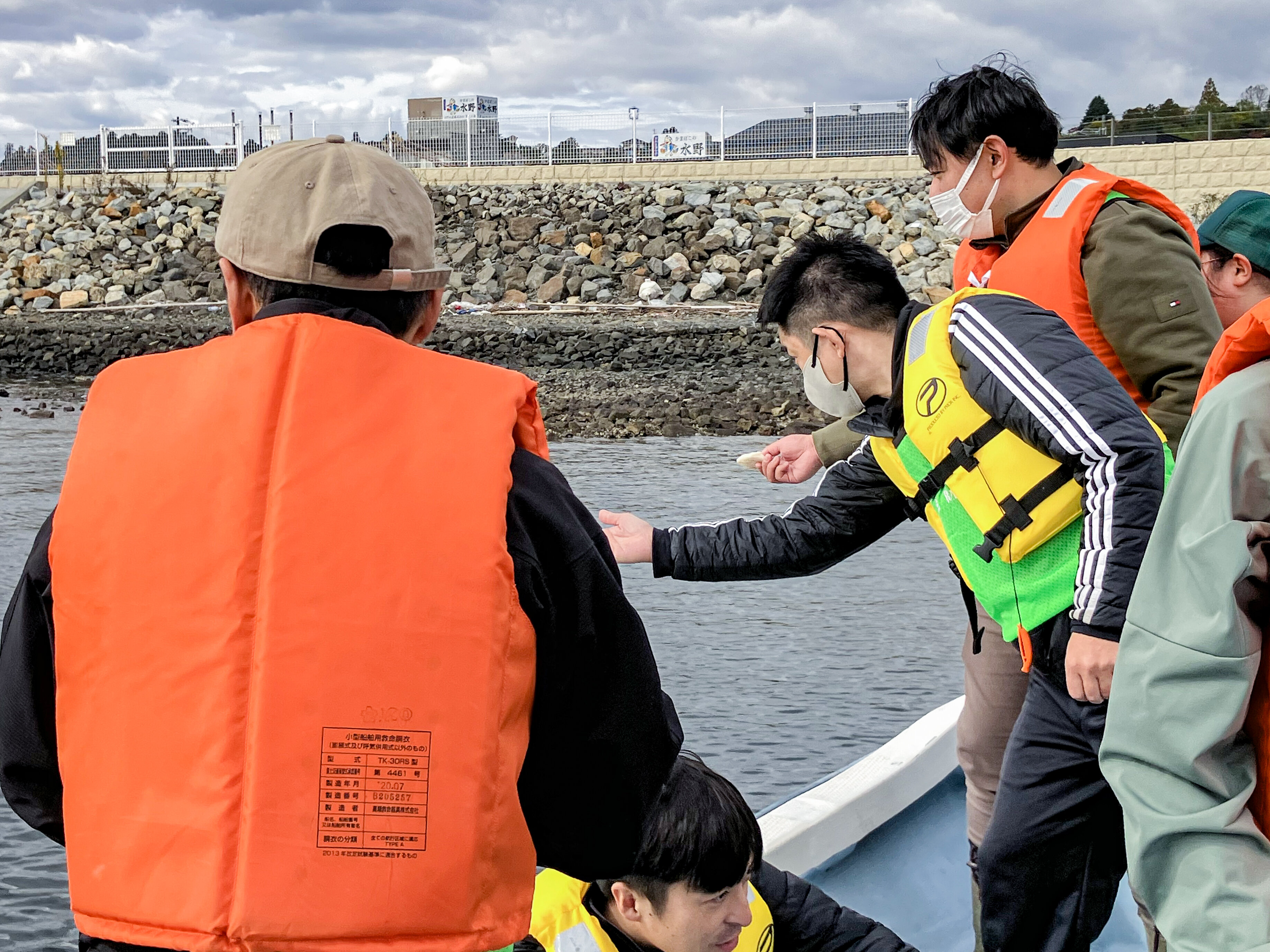 活動の後半では、船に乗り、粘土に付けたアマモの種をマリンベース近くの海に撒きました。未来の藻場を育てる第一歩を自分たちの手で担う瞬間は、参加者にとって大きな達成感を得られるものとなりました。震災前の豊かな海を取り戻すにはまだ時間がかかりますが、こうした地道な取り組みが確実に希望につながっていることを実感しました。